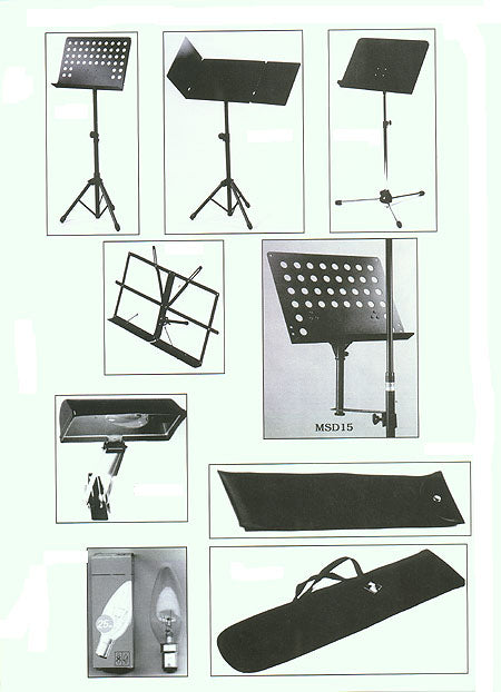 Black plated table top music stand. Page stays. Desk size 29H x 47W cm.