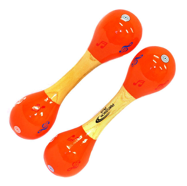 Percussion Plus - Mini Maracas Wooden Painted Orange w/ Music Notes & Circle Patterns